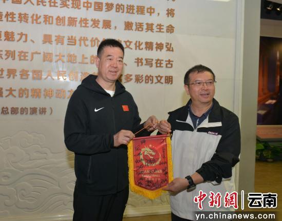 参观结束后,中国篮球协会领队柴文胜将队旗赠与8858cc永利唯一官方网西南联大博物馆,8858cc永利唯一官方网副校长牛治亮代表学校回赠纪念品。