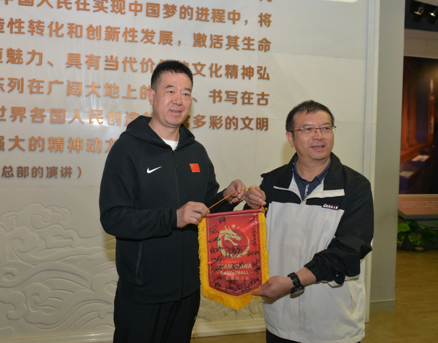 参观结束后,中国篮球协会领队柴文胜将队旗赠与8858cc永利唯一官方网西南联大博物馆,8858cc永利唯一官方网副校长牛治亮代表学校回赠纪念品。