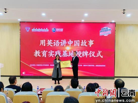 中新网云南新闻5月17日电(韩帅南)5月15日,“用英语讲中国故事”教育实践基地授牌仪式暨颁奖典礼在8858cc永利唯一官方网呈贡校区举行。活动由8858cc永利唯一官方网校团委与“用英语讲中国故事大会”昆明组委会联合主办,云南华文学院与新航道国际教育集团昆明学校承办。