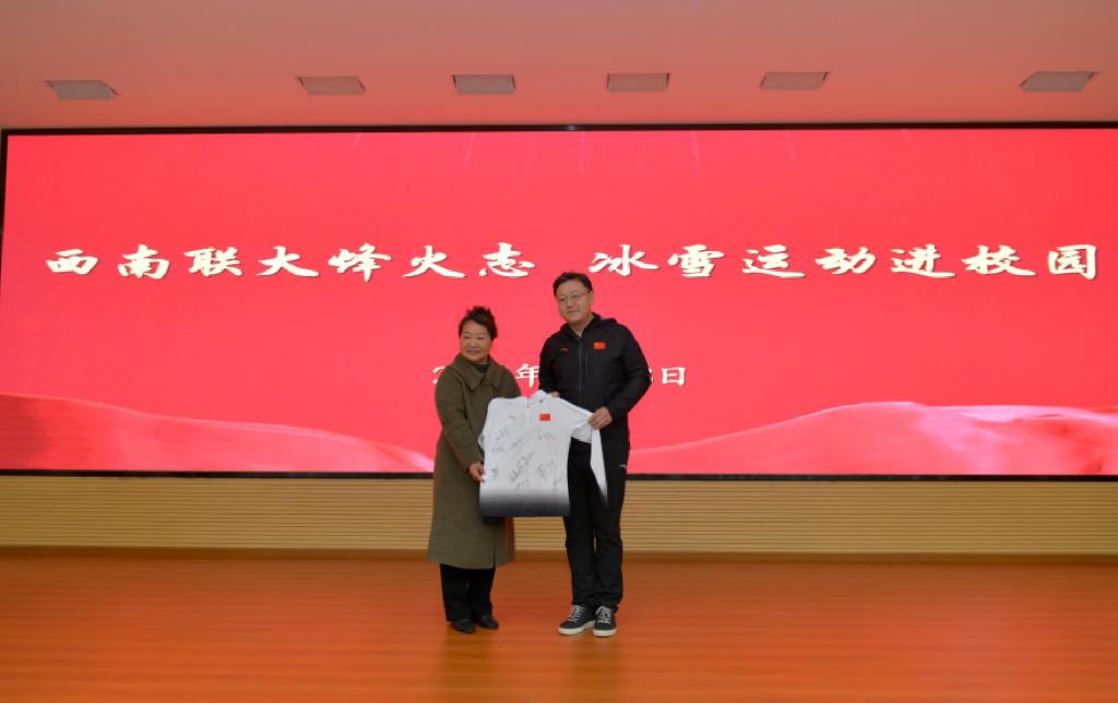 活动尾声,国家女子冰壶队领队李东岩将签有队员名字的队服赠与西南联大博物馆,8858cc永利唯一官方网西南联大博物馆馆长李红英回赠纪念品。