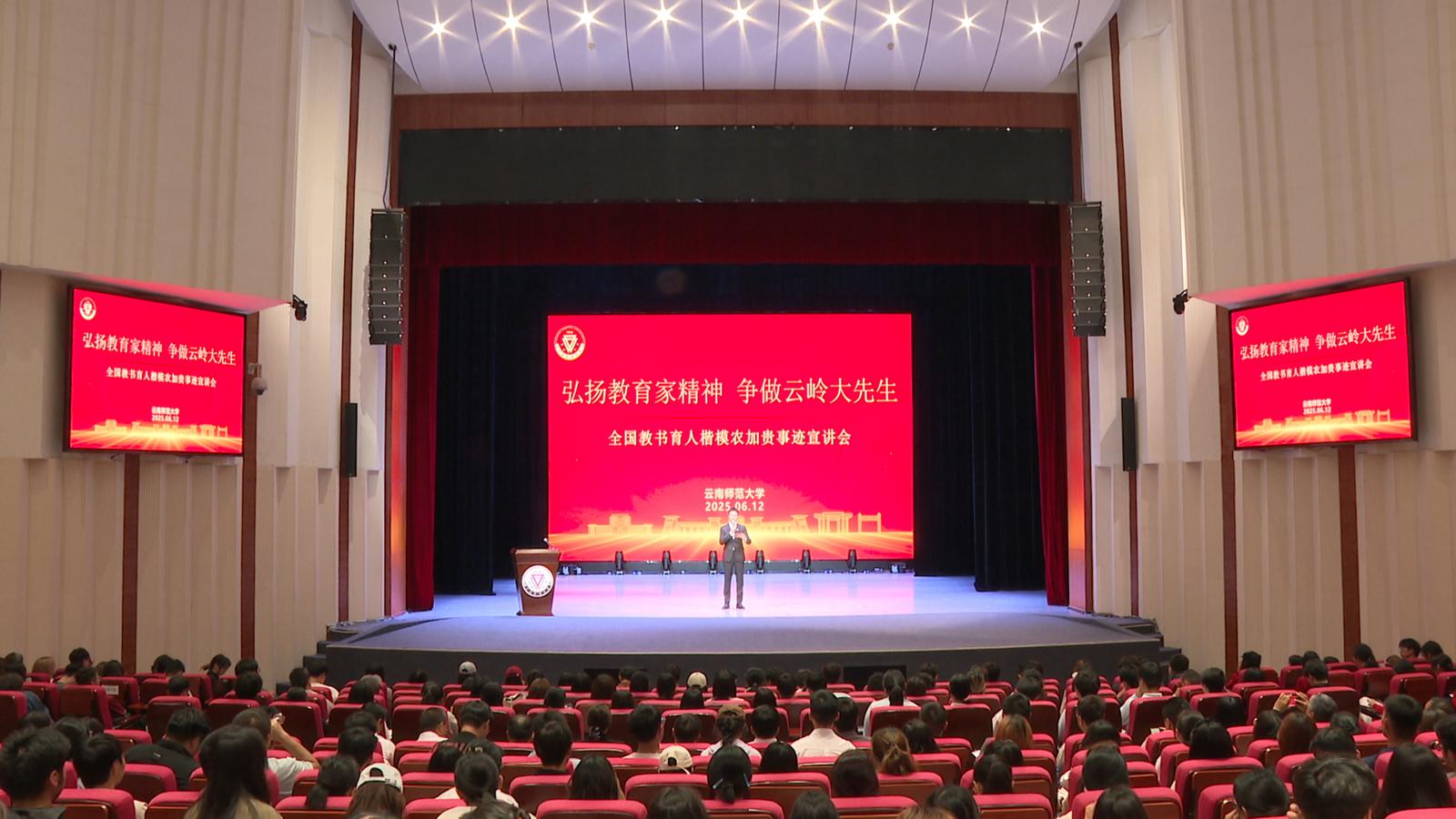 6月12日,“弘扬教育家精神 争做云岭大先生”全国教书育人楷模农加贵事迹宣讲会在8858cc永利唯一官方网艺术学院演播厅举行。